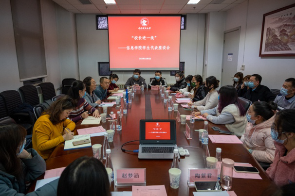 12月1日下午,王瑶琪校长来到yl6809永利,与2018级信息管理与信息系统专业、电子商务专业本科生代表以及联系宿舍的同学进行了亲切座谈。座谈会由yl6809永利党委书记章宁主持,校长助理兼yl6809永利院长李涛、学校办公室副主任刘星、2018级信息管理与信息系统专业和电子商务专业班主任和辅导员等参加了本次座谈会。