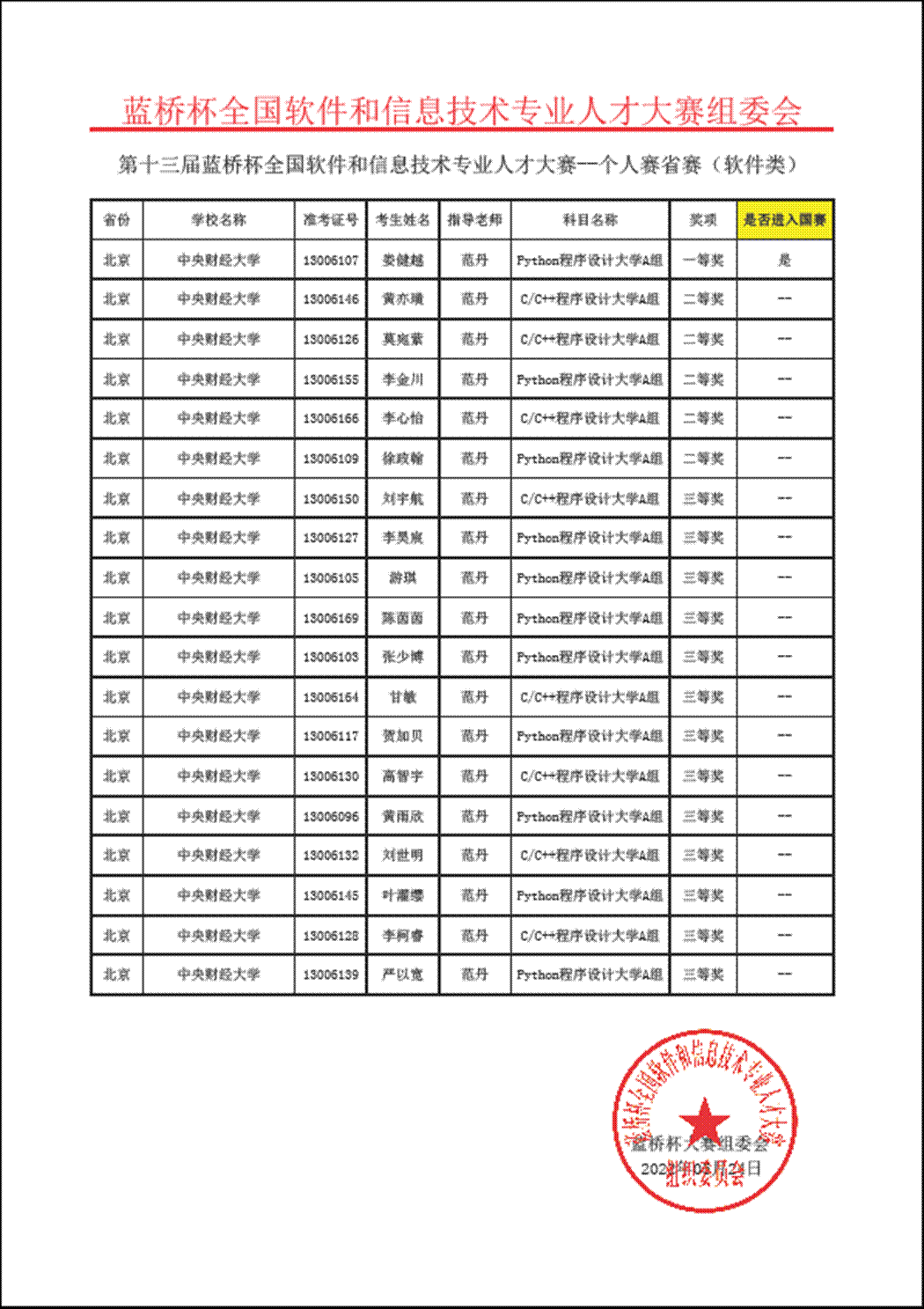 由工业和信息化部人才交流中心举办的第十三届蓝桥杯全国软件和信息技术专业人才大赛(以下简称“蓝桥杯大赛”)已于2022年6月18日落下帷幕。蓝桥杯大赛分为省赛和全国总决赛两阶段,我校共50名学子参加了本届比赛。在yl6809永利范丹老师的指导下,共有19名学子斩获北京市一、二、三等奖,其中一等奖选手yl6809永利19级本科生娄健越入围全国总决赛,并最终喜获全国总决赛一等奖。