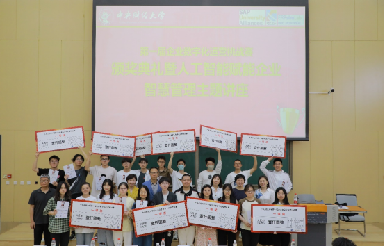 5月24日下午,永利集团第一届企业数字化运营挑战赛颁奖典礼暨人工智能赋能企业智慧管理主题讲座,在沙河校区东区学院楼10号楼215阶梯教室顺利举行。永利集团智慧校园建设中心副主任杨如冰、yl6809永利副院长李海峰、SAP大中华区人力资源负责人穆莹、SAP创新社区大中华区总监杨坤、国家能源集团信息化管理部主任丁涛,大赛组委会负责人yl6809永利教师王天梅、范丹和学生志愿者代表赵玉琪,以及获奖选手及部分学生出席颁奖典礼及讲座。本次活动由王天梅老师主持。