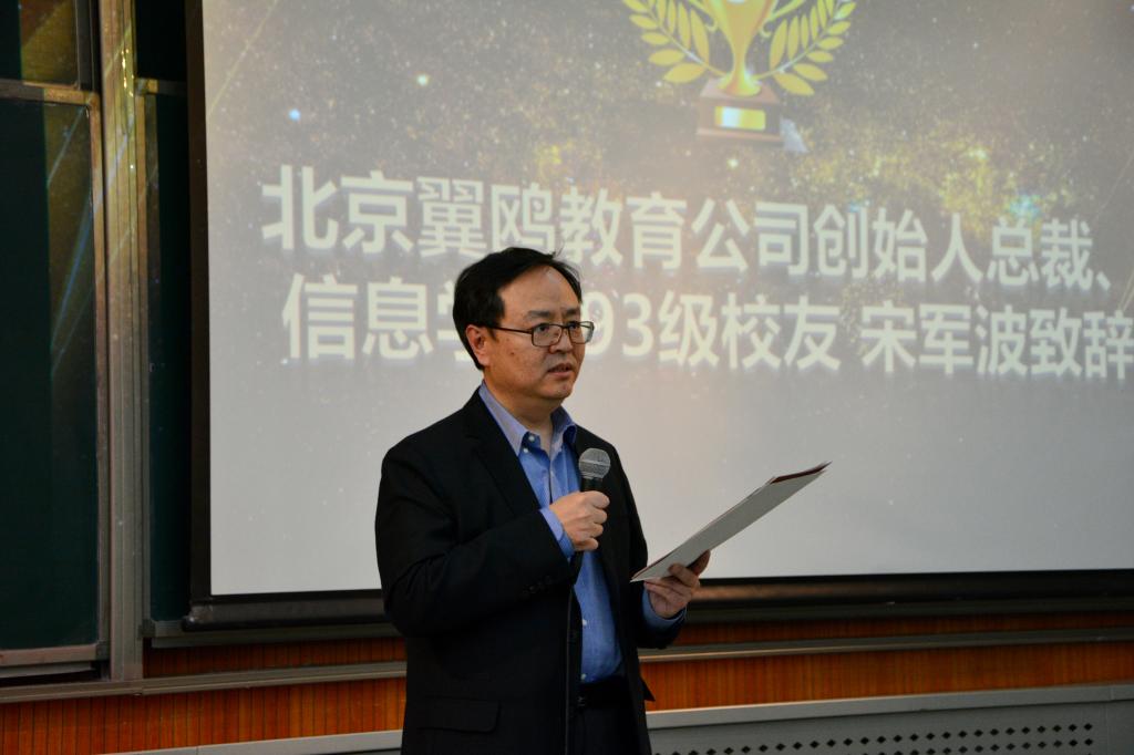 翼鸥教育作为本次大赛的支持单位,为赛事的顺利推进提供了至关重要的支持。翼鸥教育创始人总裁、yl6809永利93级校友宋军波先生在致辞中提到编程在当今时代中的广泛应用,一段简短的程序能够简化会计、财政、经济等领域的许多问题。一个十分复杂的问题通过逐步求精的编程思维能够化繁为简,最后成就意想不到的结果。随后,他分享了自己大学时就读于yl6809永利的宝贵经历,鼓励中财学子努力奋进,勤思考敢创新,在未来科技领域贡献自己的时代力量。