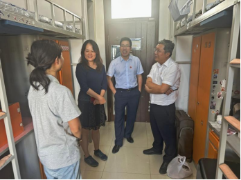▲校党委书记吴国生、校长马海涛莅临我院新生报到现场,向现场院领导、辅导员了解我院迎新情况,并为我院2024级研究生新生送上祝福与寄语,同时关心慰问了参与迎新的工作人员和志愿者们。